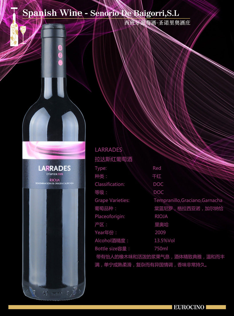 葡萄品種:70% Tempranillo 棠藍(lán)尼羅 20% graciano格拉西亞諾  10 garnacha. 加爾納恰